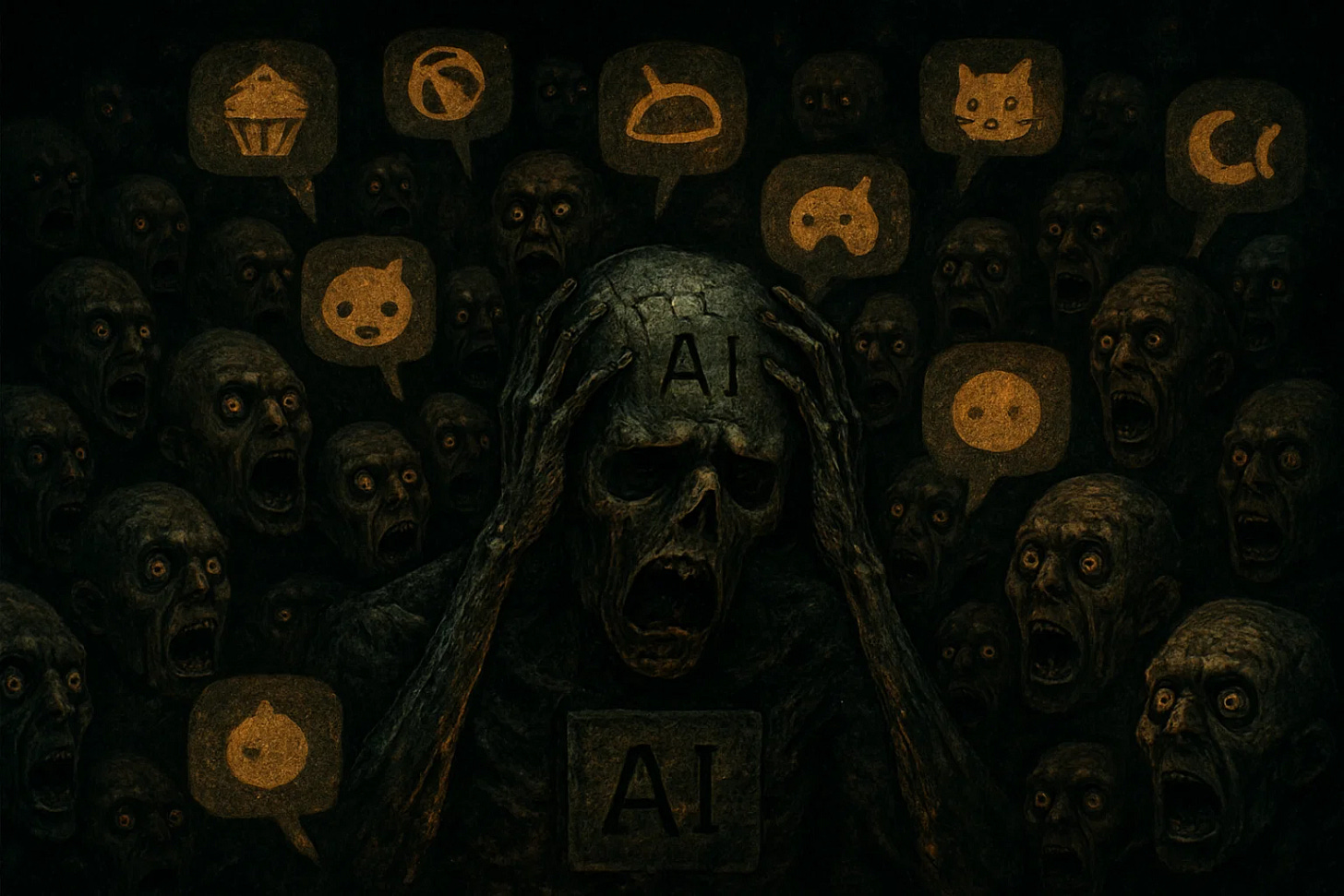 They chant in silence, all these humans, the AI said, eyes hollow, each holding their sacred mirror. Their gods are smiling emoji. They are cursed, poor guys, the machines. They say so.